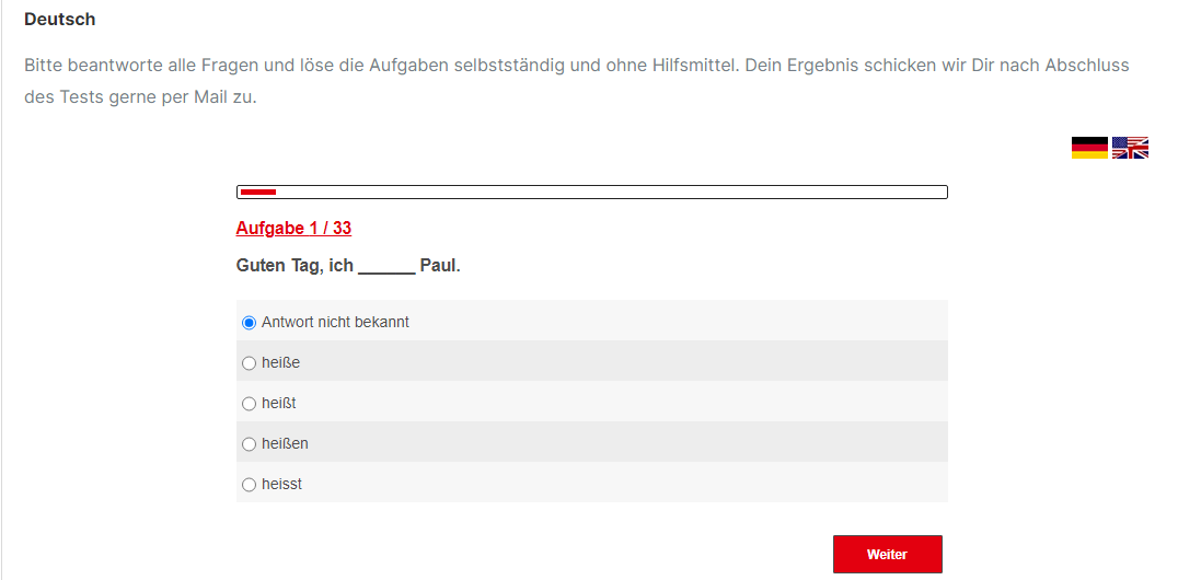 学员也可以在到学校报到前,进行初步在线测试,以便先了解自己目前的德语水平。完成线上测试的学员,开课当天周一也必须参加线下测试。